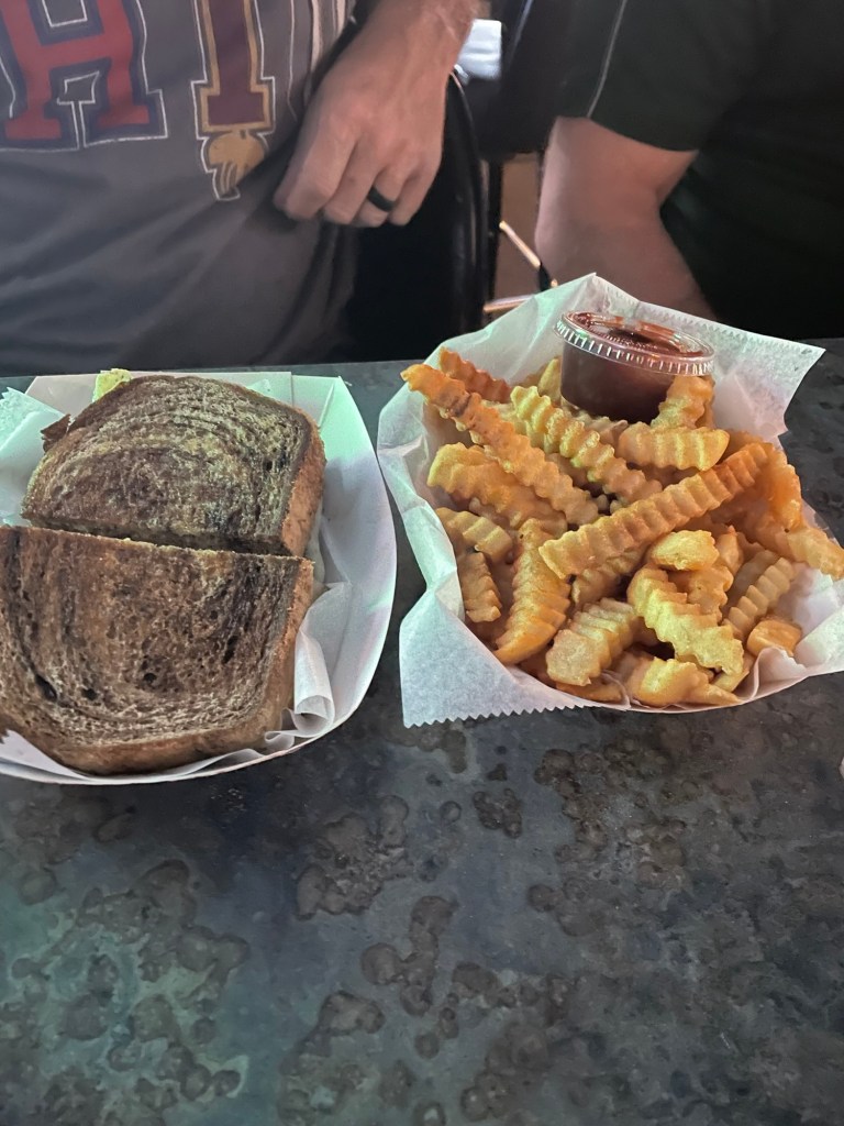 And Todd got the patty melt. With crinkle cut fries, which I didn’t know were a thing here and immediately regretted not switching to after the server walked away because food envy is real. Especially involving specialty cut potatoes.