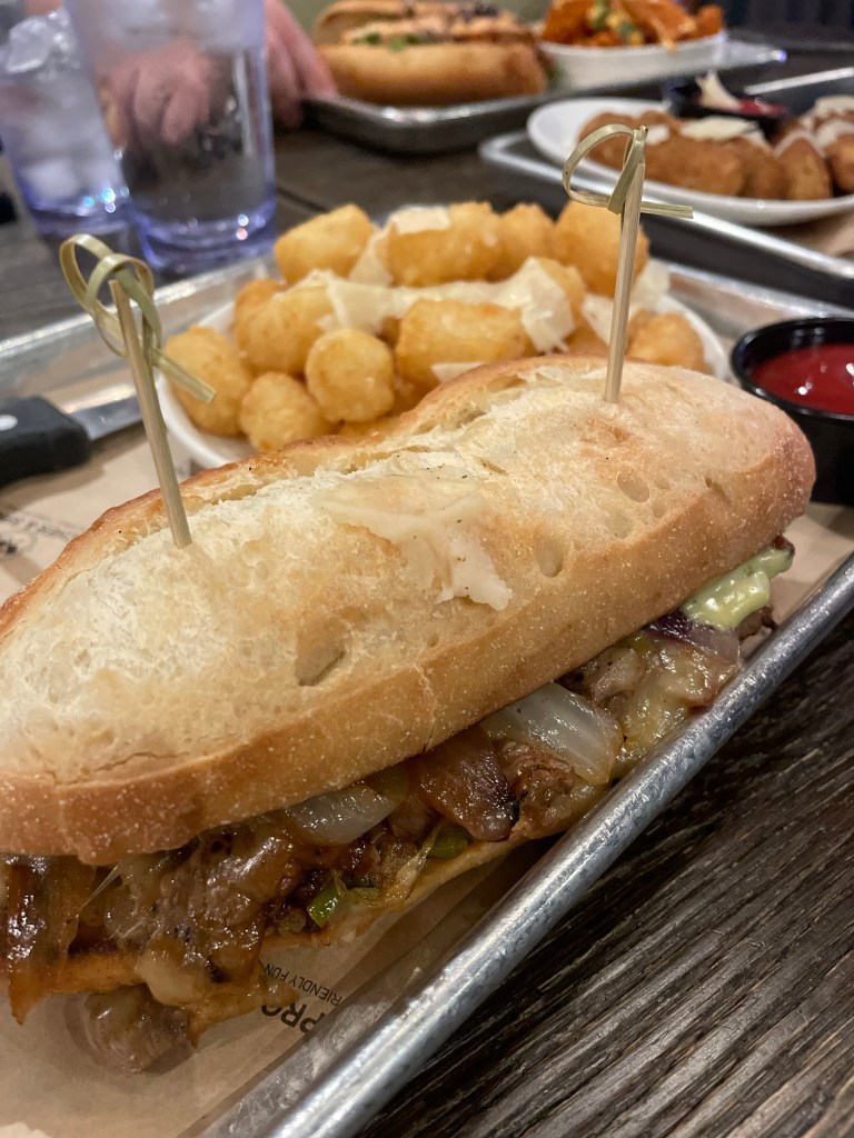 Similar story with my sandwich, which was really good – and did include spice. The steak was seasoned well and made the sandwich very tasty. The tots were perfect, and as Ted said, something that might go on a “best of” list of I were one to do that.