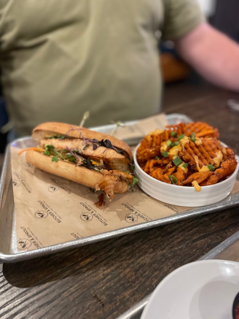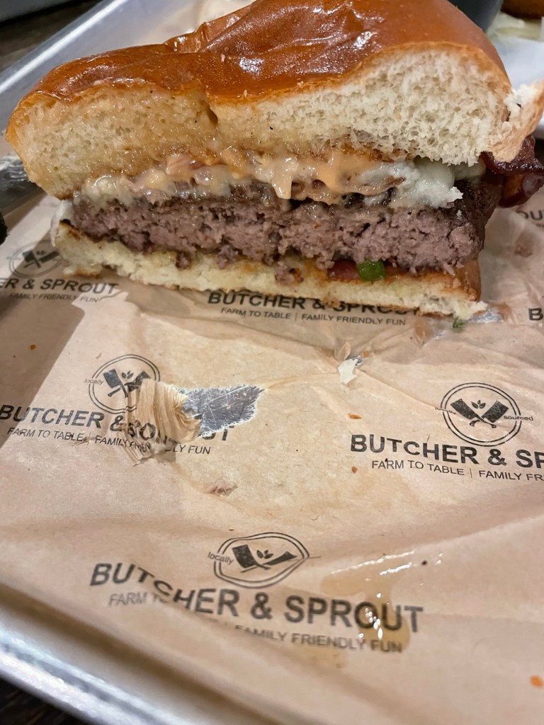 We ended up here at Butcher & Sprout because 1) Ted had a work event at HiHo Brewery just down the street and thought it would be an easy walk over for him, 2) after a few beers at HiHo he kind of lost the ability to look up a new place and 3) we realized we hadn’t been here since early 2020.